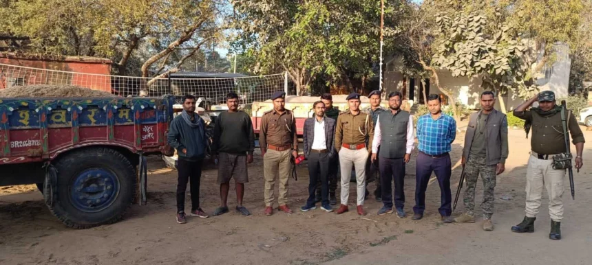 छापेमारी दल द्वारा दाउदनगर क्षेत्रान्तर्गत के मेवा विगहा, कनाप मोड़ एवं शमशेरनगर से अवैध बालू का उत्खनन करने वाले दो अवैध खनन कर्त्ताओं क्रमशः (1) विकाश कुमार, पिता-महेश सिंह, ग्राम केरा, पो० दाउदनगर, थाना-दाउदनगर, (2) मुन्न कुमार, पिता-बलेश्वर यादव, ग्राम गिरधारी मकीया, पो०-डिन्डीर, थाना-हसपुरा को गिरफ्तार करते हुए कुल- 7 बालू लोड ट्रैक्टरों को जप्त किया गया है।